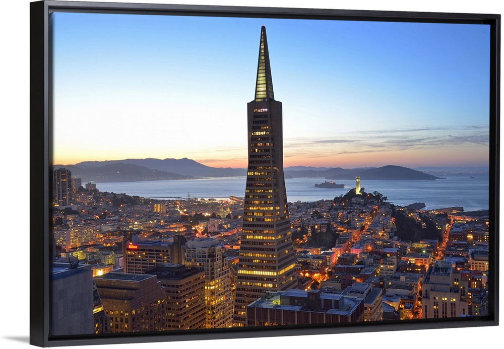<p>View from hotel Mandarin Oriental towards Transamerica Puramid and Coit Tower, San Francisco, California, USA</p>