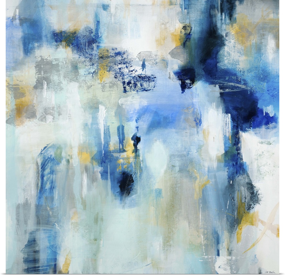 <p>Contemporary abstract painting using dark and light blue tones.</p>