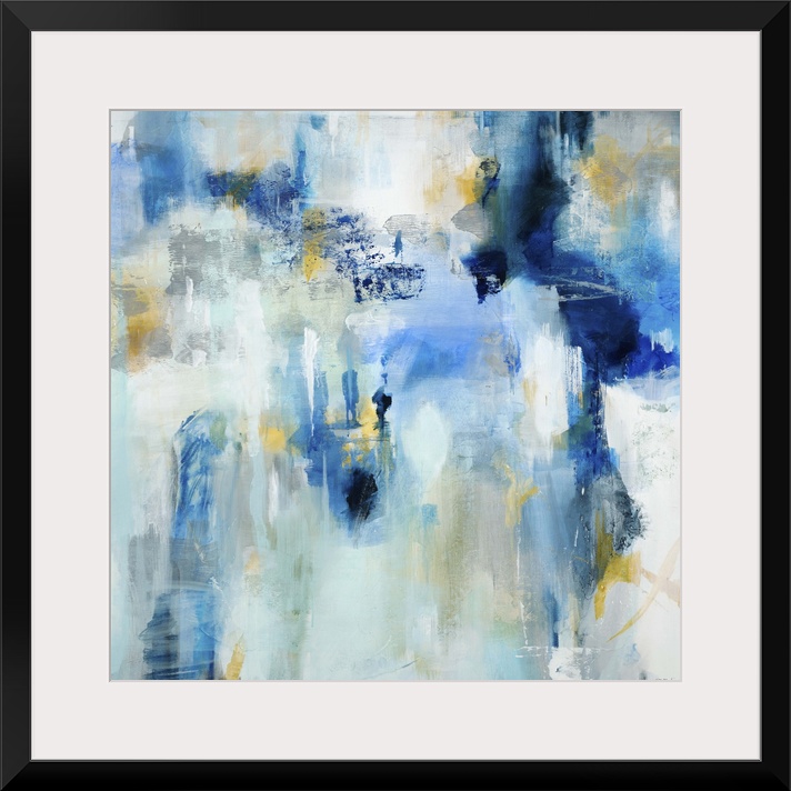 <p>Contemporary abstract painting using dark and light blue tones.</p>