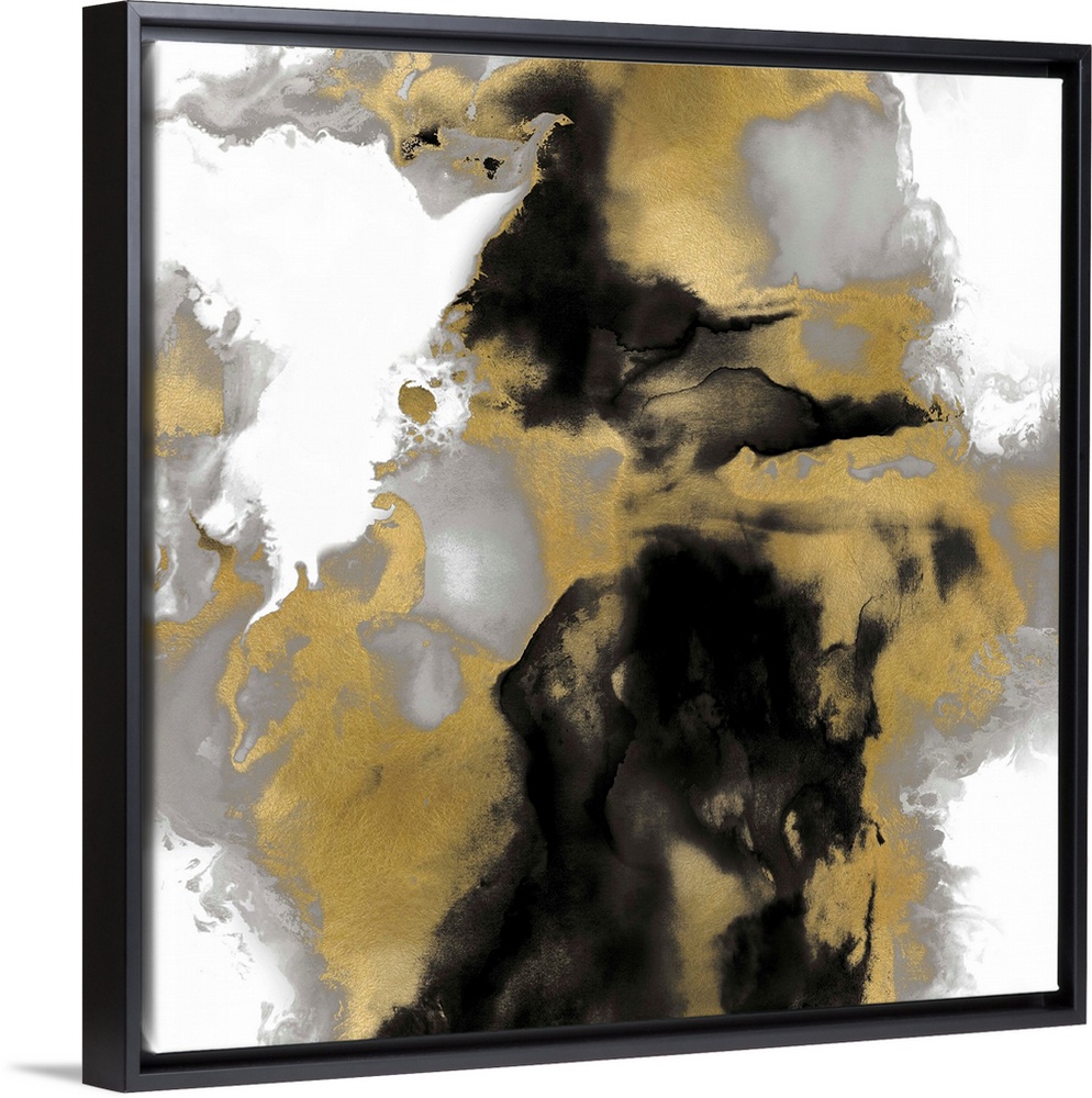 <p>Square abstract art in gold, black, and silver on a white background.</p>