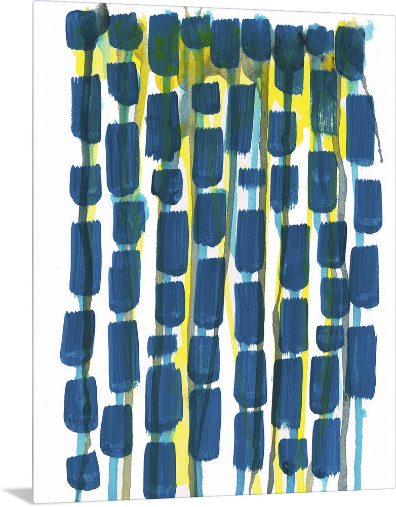 <p>Contemporary artwork featuring a chain of navy blue shapes with yellow areas.</p>