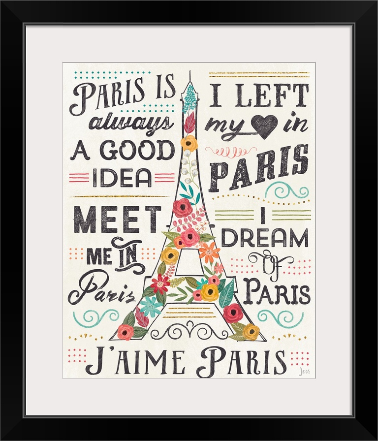 Jess Aiken Art Graphic Art Paris Eiffel Tower Typography & Calligraphy