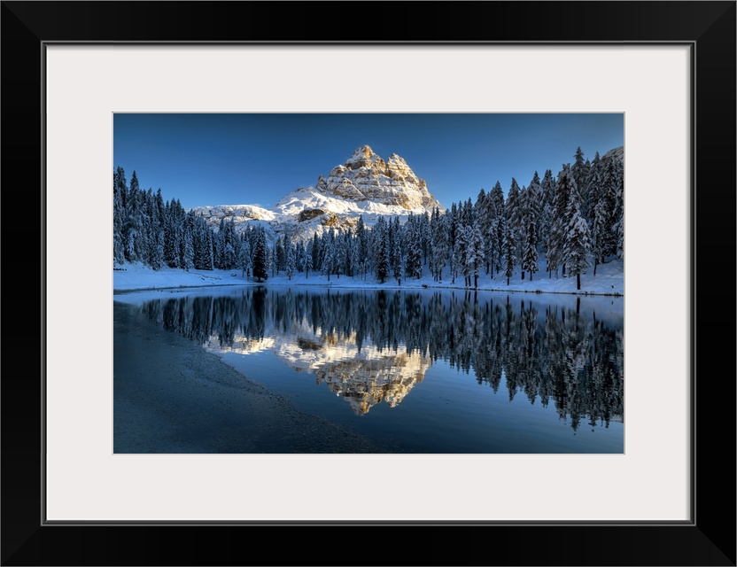 <p>Tre Cime di Lavaredo Reflecting in Lake Antorno, Belluno Province, Veneto, Dolomites, Italy</p>