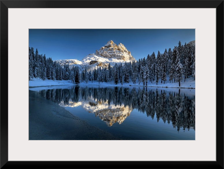 <p>Tre Cime di Lavaredo Reflecting in Lake Antorno, Belluno Province, Veneto, Dolomites, Italy</p>