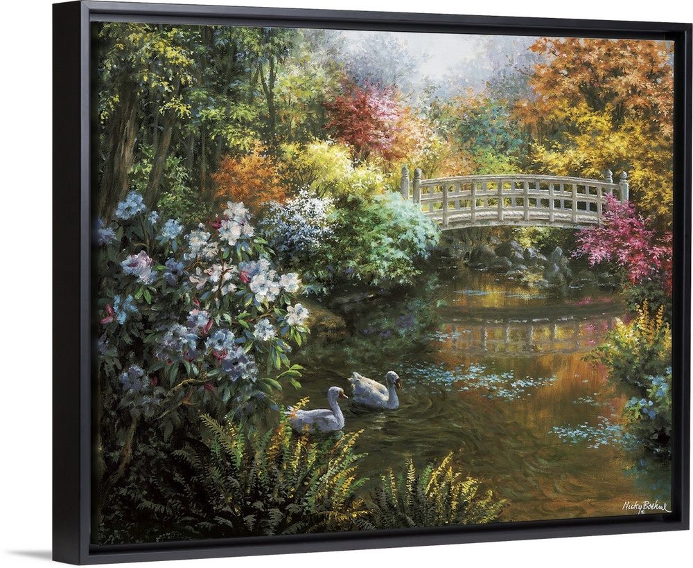 <p>Nicky Boehme imagines a world full of light and goodness in paintings that capture idyllic scenes of the laid-back life. Boehme is the consummate artist who painted as a young child and throughout her storied professional life. The dramatic interplay of light, color and mood create soothing scenery for wall art that will complement the atmosphere in quiet spaces such as bedrooms, reading nooks or dens. The world through the eyes and skilled brush strokes of Nicky Boehme glitters with romanticism and realism. You can almost taste the snow flurries covering a winter scene or hear the brook gurgling past a remote homestead.</p>