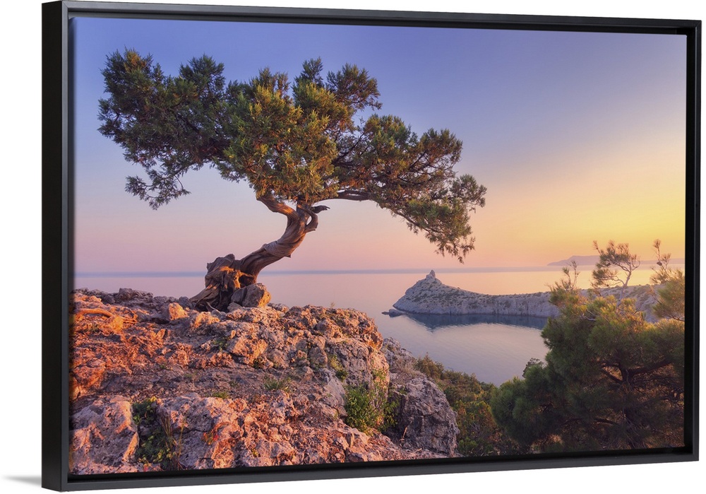 <p>Tree Growing Out Of The Rock At Sunrise, Crimea</p>