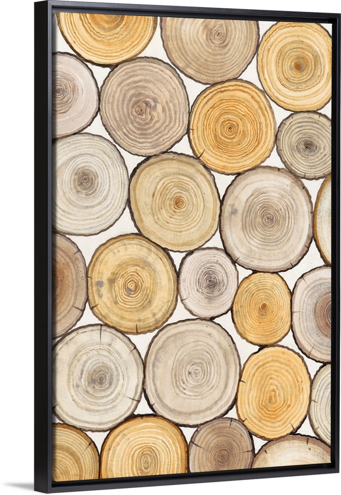 <p>Assortment of tree trunk cross-sections with prominent rings.</p>