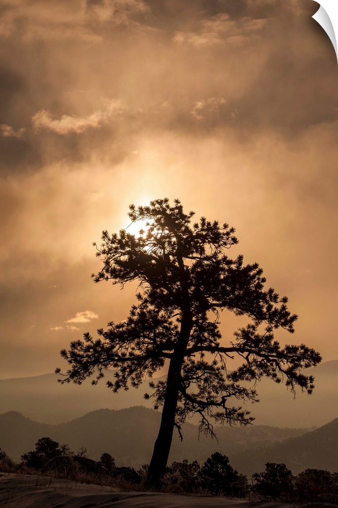 <p>A photograph of a silhouetted tree against a sunset.</p>