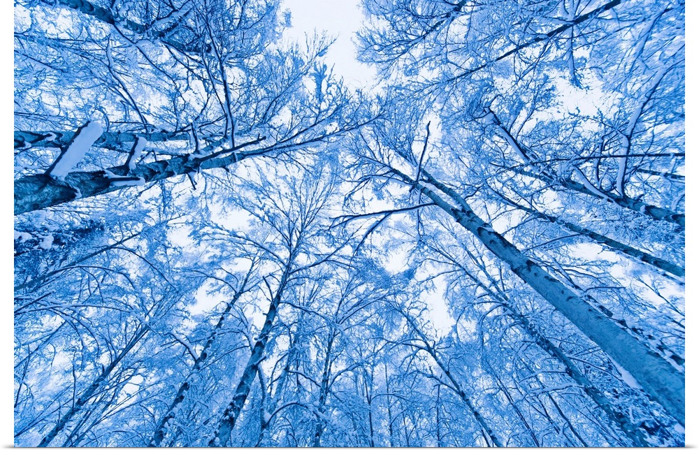 <p>Tree top abstract of a snow covered Birch forest, winter, Anchorage, Alaska, USA.</p>