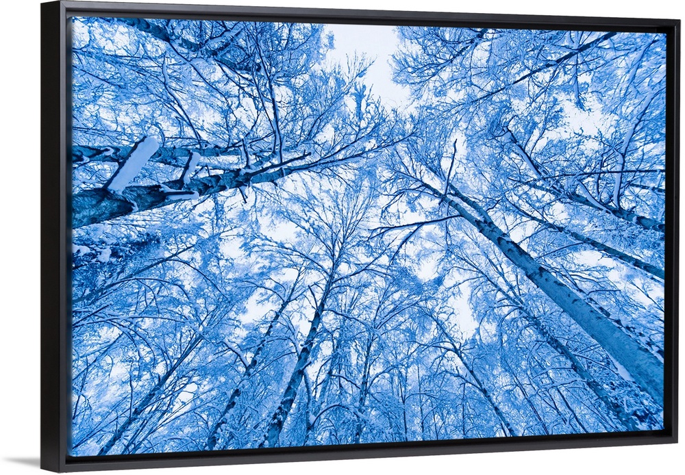 <p>Tree top abstract of a snow covered Birch forest, winter, Anchorage, Alaska, USA.</p>
