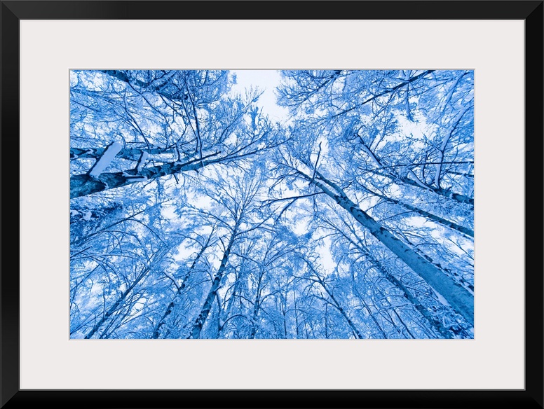 <p>Tree top abstract of a snow covered Birch forest, winter, Anchorage, Alaska, USA.</p>