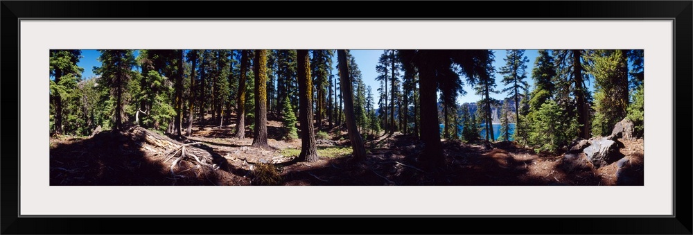 <p>Trees in a forest, Wizard Island, Crater Lake, Crater Lake National Park, Oregon, USA</p>