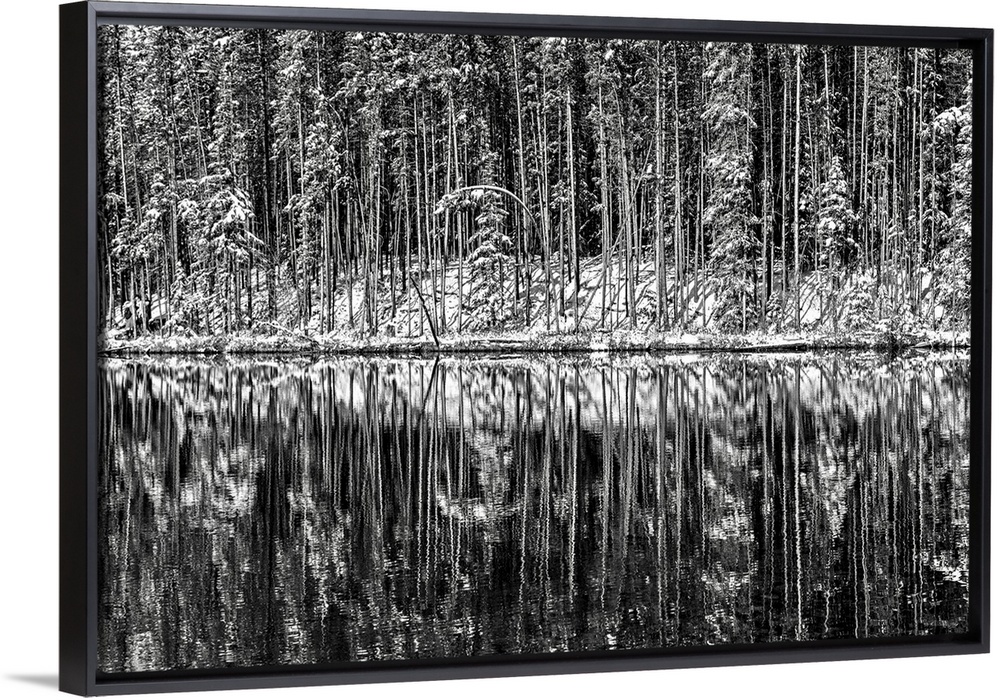 <p>Trees and their reflection, early Winter in the Canadian Rockies.</p>