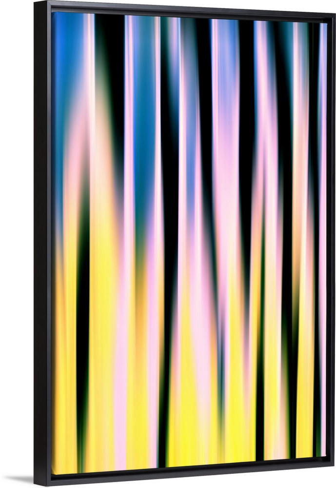 <p>Extreme abstract of trees on a very sunny day. The image was made using the vertical ICM (Intentional Camera Movement) technique. This technique blurred out detail while intensifying shapes and colours. The image is a study in shapes, lines and colors. Ursula Abresch Abstract Trees Collection.</p>