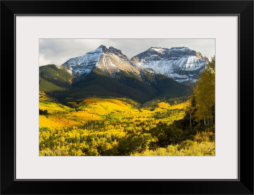 <p>Trees with mountain range in the background, Aspen, Pitkin County, Colorado, USA</p>