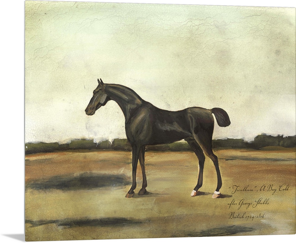 <p>Contemporary painting of a horse in a field, reminiscent of antique equestrian portraits.</p>