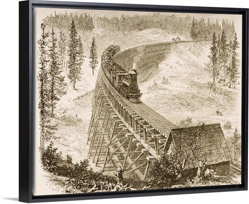 <p>Trestle Bridge Of The Central Pacific Railroad In The 1870s. From "American Pictures Drawn With Pen And Pencil" By Rev Samuel Manning, Circa 1880.</p>