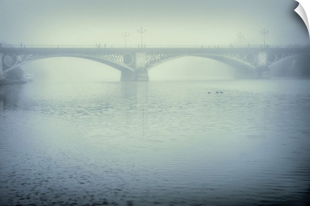 <p>Triana bridge on a misty day, Seville, Spain.</p>