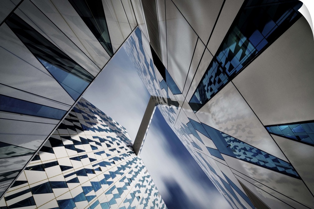 <p>Glass facades of skyscrapers creating abstract patterns with their reflections.</p>