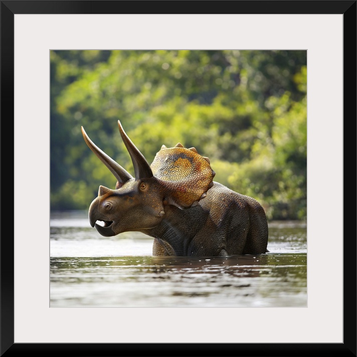 <p>Triceratops dinosaur in lake.</p>