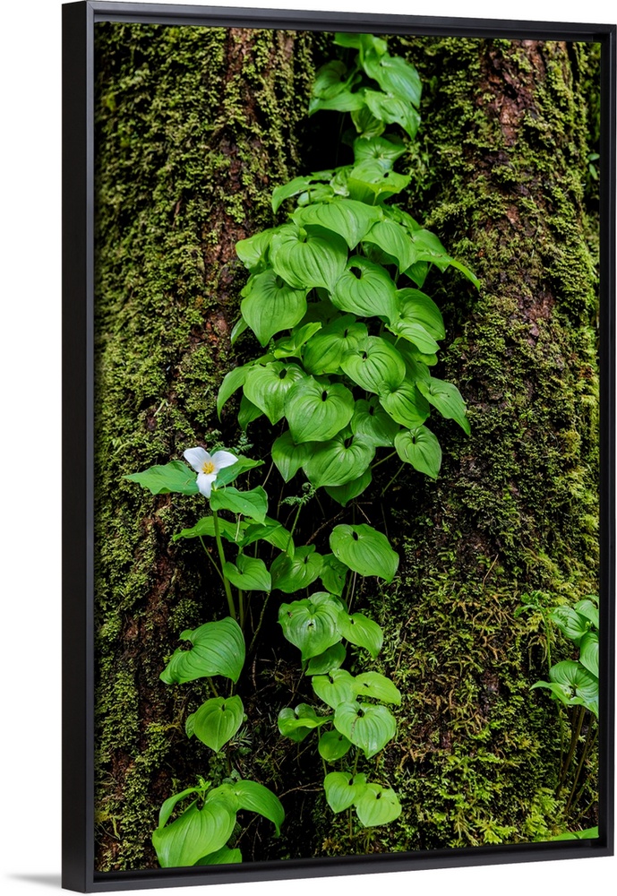 <p>Trillium and Lady of the Valley grow on douglas fir tree in Olympic National Park, Washington, USA</p>