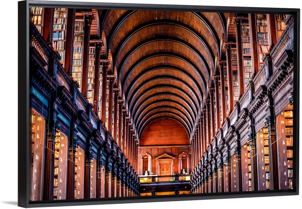 <p>Photograph of the arched wooden ceilings of Trinity College Library, which serves Trinity College and the University of Dublin.</p>