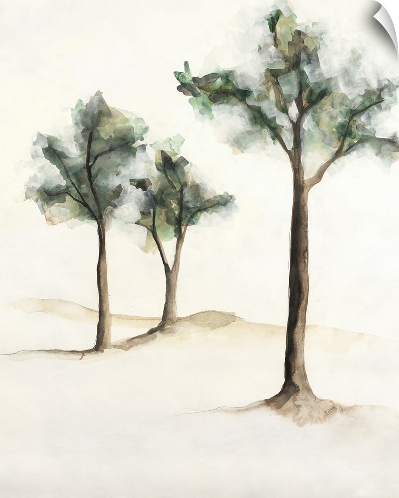<p>Watercolor painting of three trees on a neutral colored background.</p>