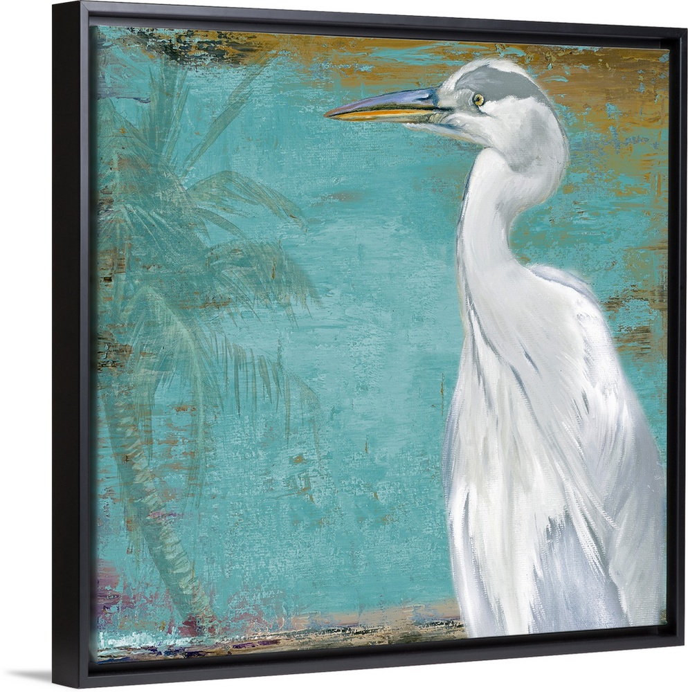 <p>Docor perfect for the home of a painted white heron peering to the left where there is a faded palm tree.</p>
