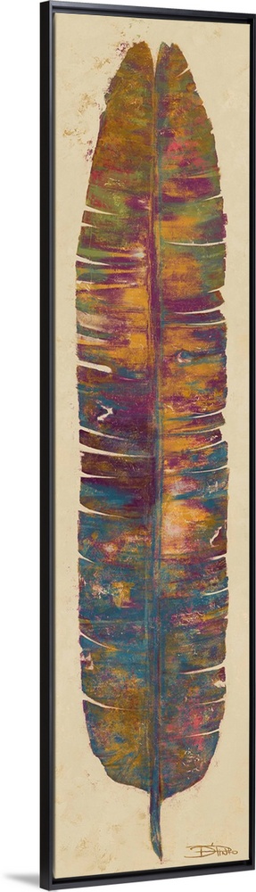 <p>Contemporary painting of a multi-colored tropical leaf.</p>