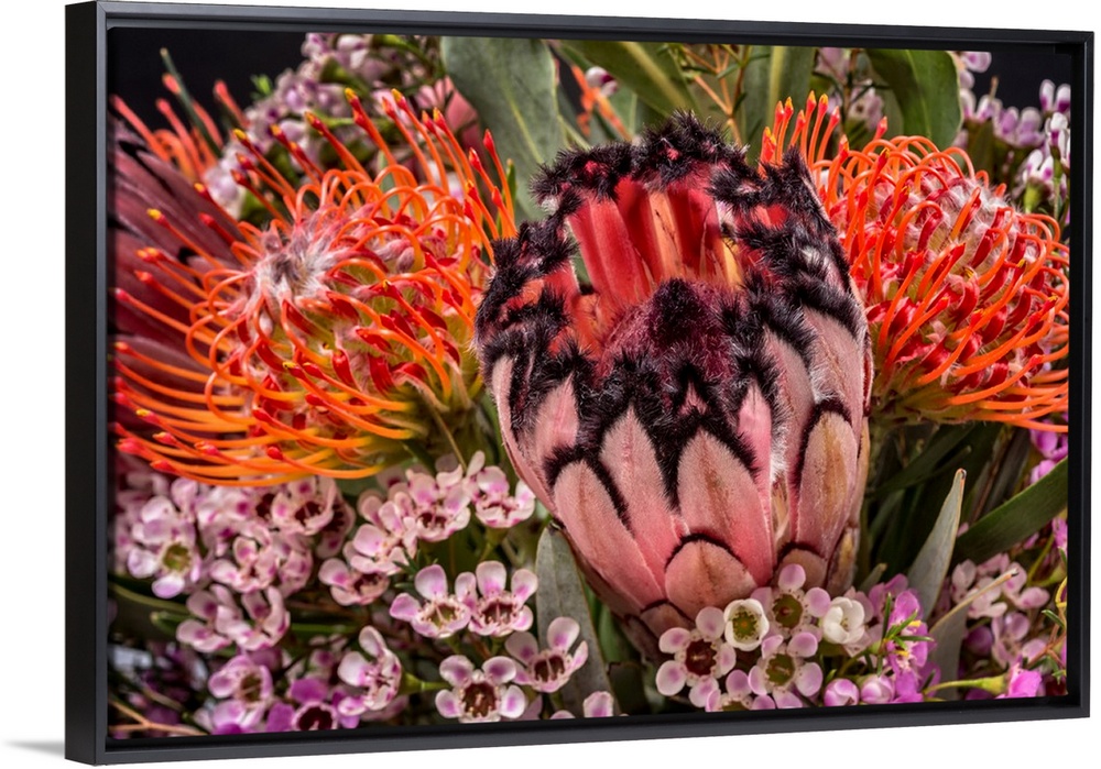 <p>Close-up of photograph of a bouquet of tropical flowers.</p>
