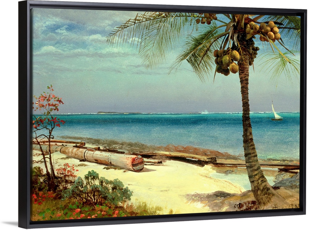 Art Albert Bierstadt Classic Art Romanticism Rivers, Lakes and Oceans Fruit Coconut Landscapes Beaches Tropical Beaches Seascapes Palm Painting