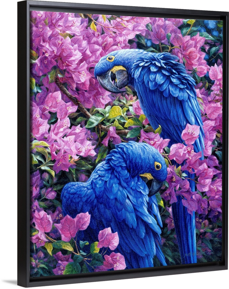 Art Blue Wall Art Contemporary Art Plants and Flowers Wildlife Florals Painting Wildlife Bird Tropical Birds