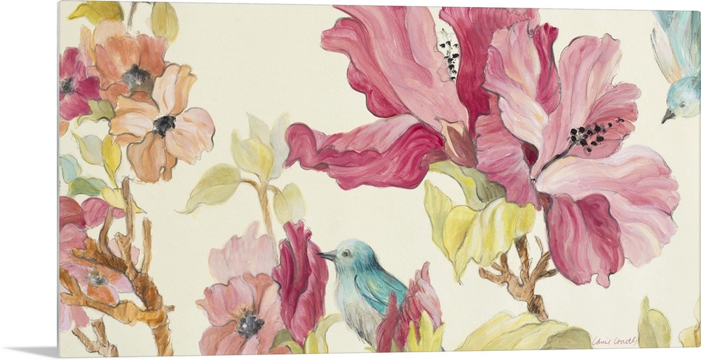 Art Decorative Art Florals Tropical Flowers Lanie Loreth Painting Pink Wall Art Bird
