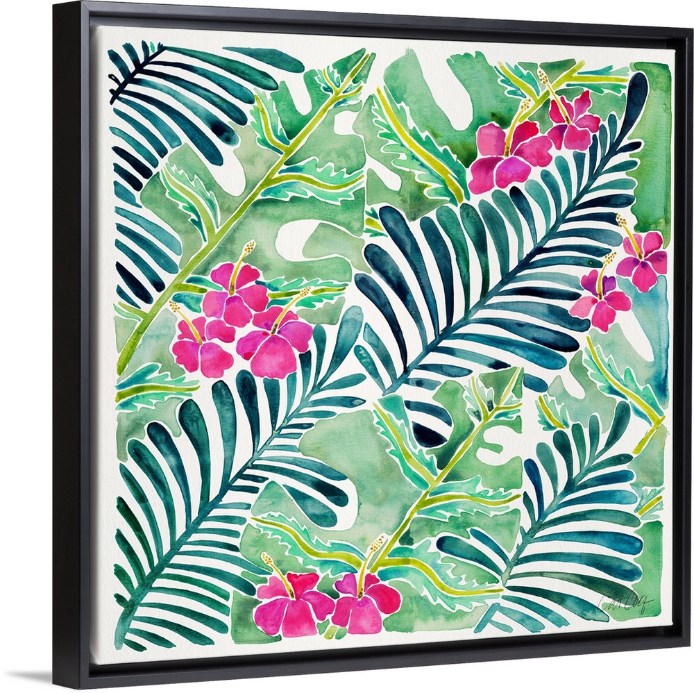 Art Plants and Flowers Cat Coquillette Decorative Art Florals Hibiscus Green Wall Art Painting Tropical Watercolor