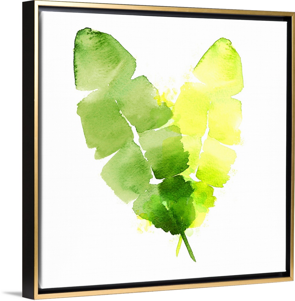 <p>Square decorative watercolor image of banana leaves on a white background.</p>