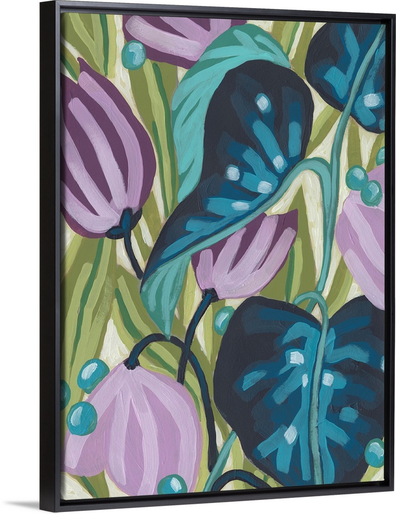 Art Contemporary and Modern Blue Wall Art Decorative Art Florals Leaves Painting Purple Wall Art June Erica Vess