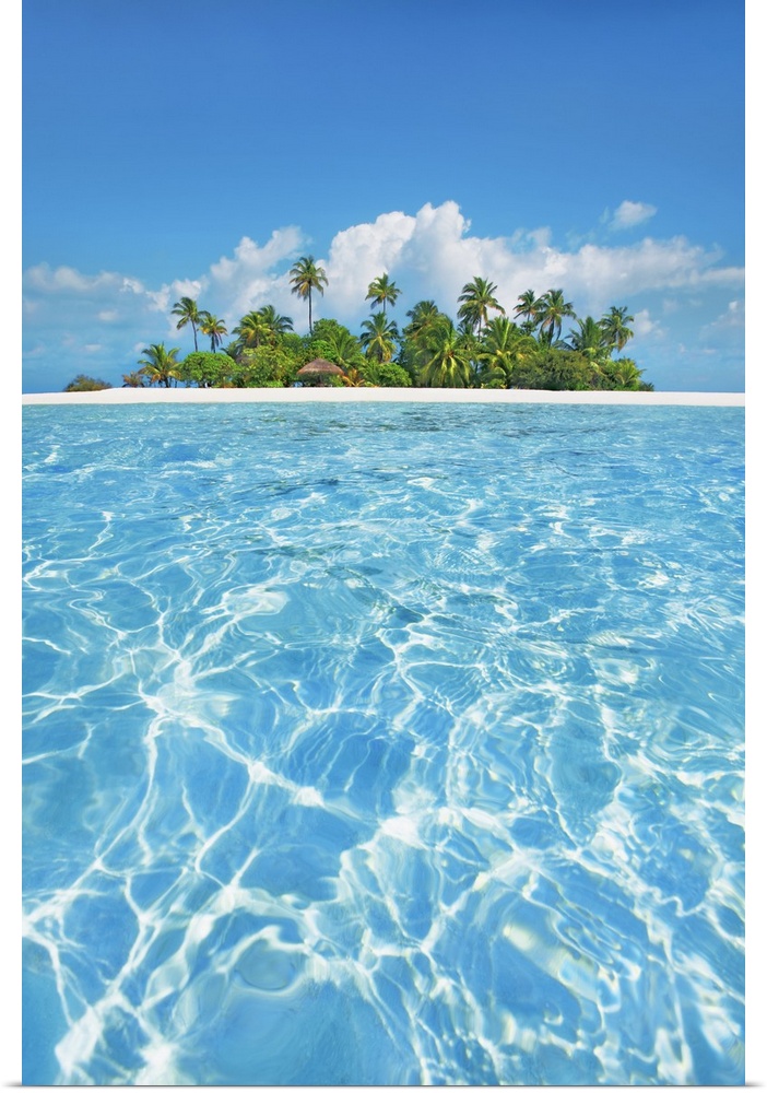 <p>Tropical lagoon with palm island. Maldives, South Male Atoll, Mahaanaelhihuraa. Rihiveli. South Male Atoll, Asia, Maldives.</p>