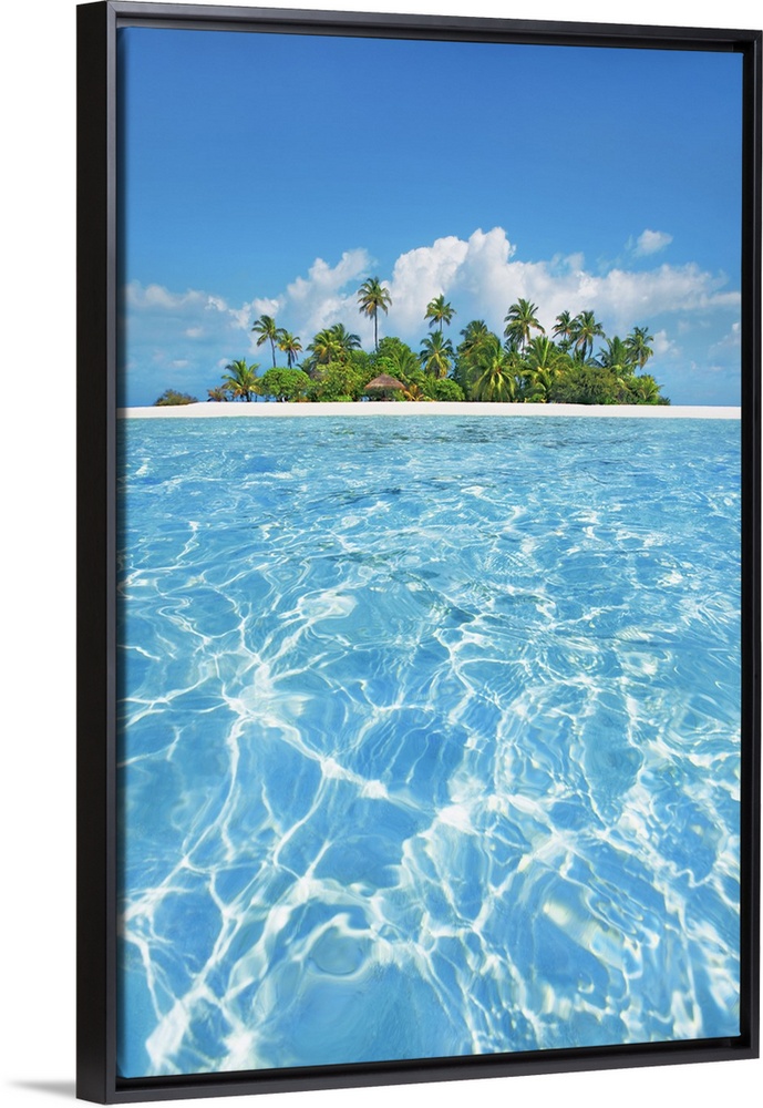 <p>Tropical lagoon with palm island. Maldives, South Male Atoll, Mahaanaelhihuraa. Rihiveli. South Male Atoll, Asia, Maldives.</p>