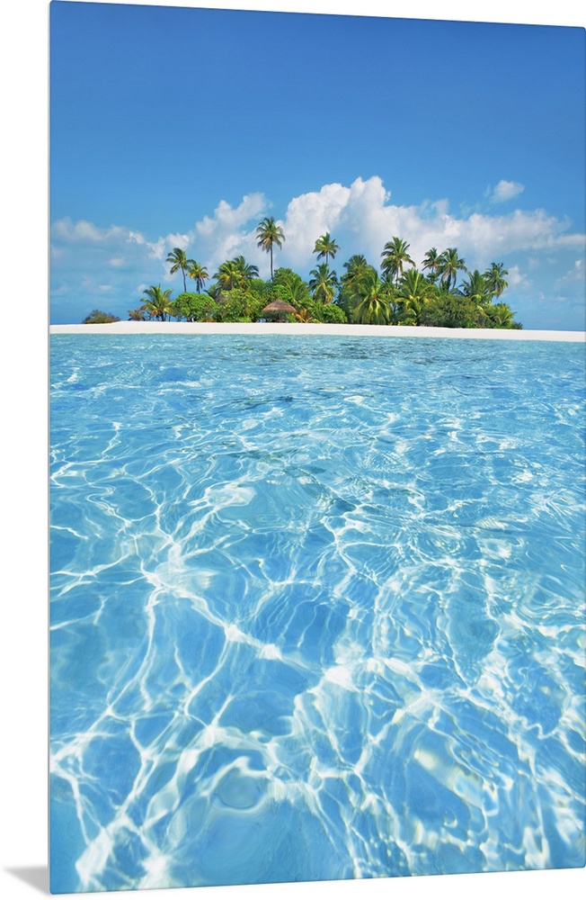 <p>Tropical lagoon with palm island. Maldives, South Male Atoll, Mahaanaelhihuraa. Rihiveli. South Male Atoll, Asia, Maldives.</p>