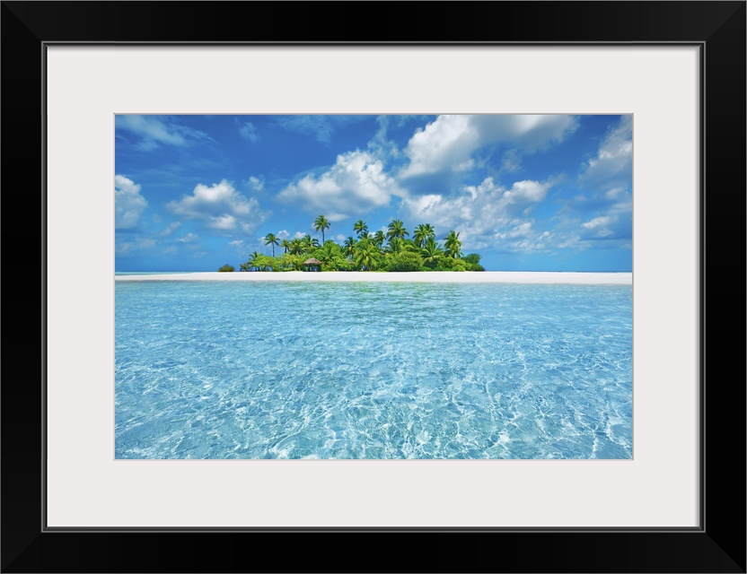 <p>Tropical lagoon with palm island. Maldives, South Male Atoll, Mahaanaelhihuraa. Rihiveli. South Male Atoll, Asia, Maldives.</p>