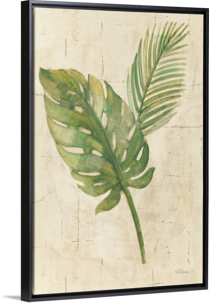 <p>Decorative artwork featuring tropical leaves over an aged background.</p>