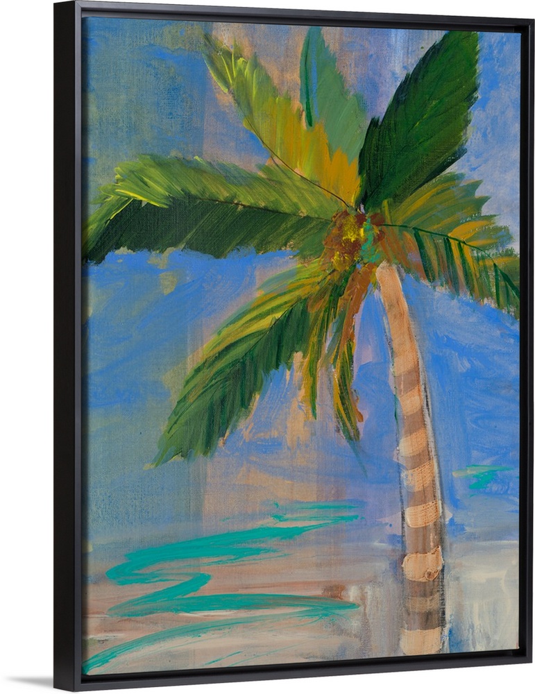 <p>Contemporary painting of a palm tree against a deep blue sky.</p>