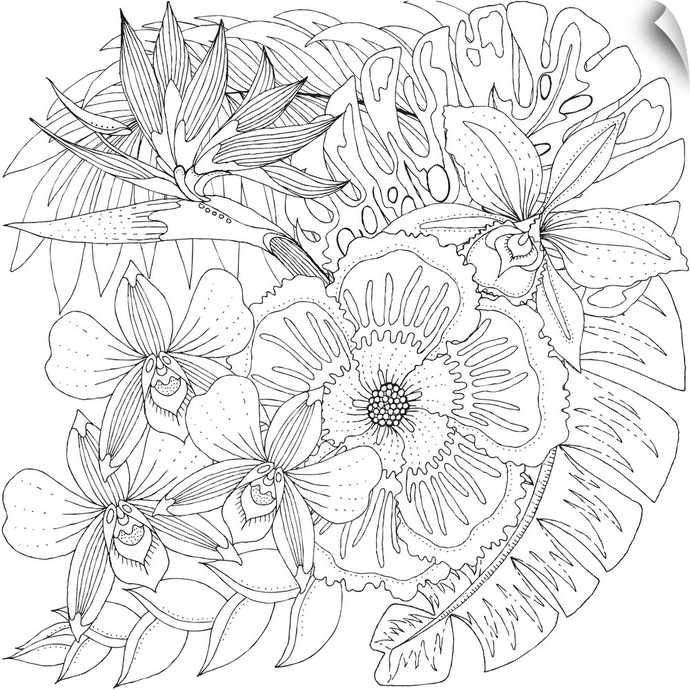<p>Contemporary tropical floral art with a variety of tropical plants and flowers.</p>