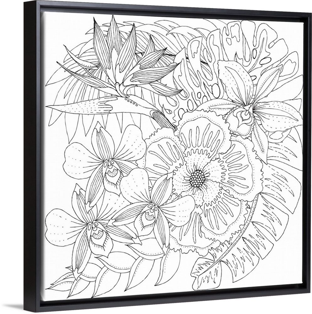 <p>Contemporary tropical floral art with a variety of tropical plants and flowers.</p>