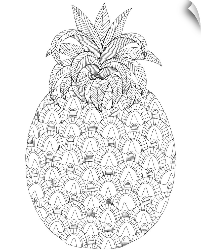 <p>Black and white lined design of a pineapple.</p>