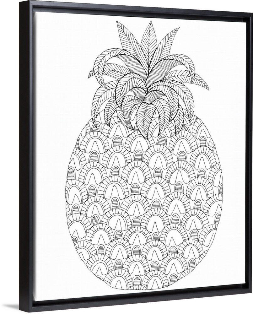 <p>Black and white lined design of a pineapple.</p>