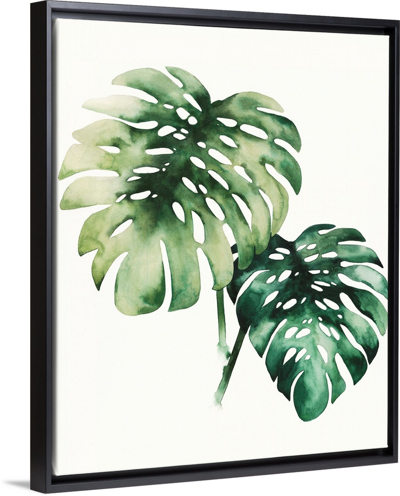 <p>Watercolor artwork of two broad green palm fronds.</p>