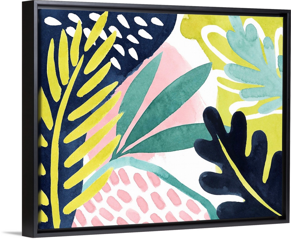 <p>Bright tropical abstract leaf patterns on a white background.</p>