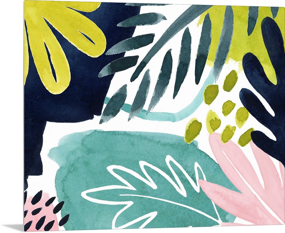 <p>Bright tropical abstract leaf patterns on a white background.</p>