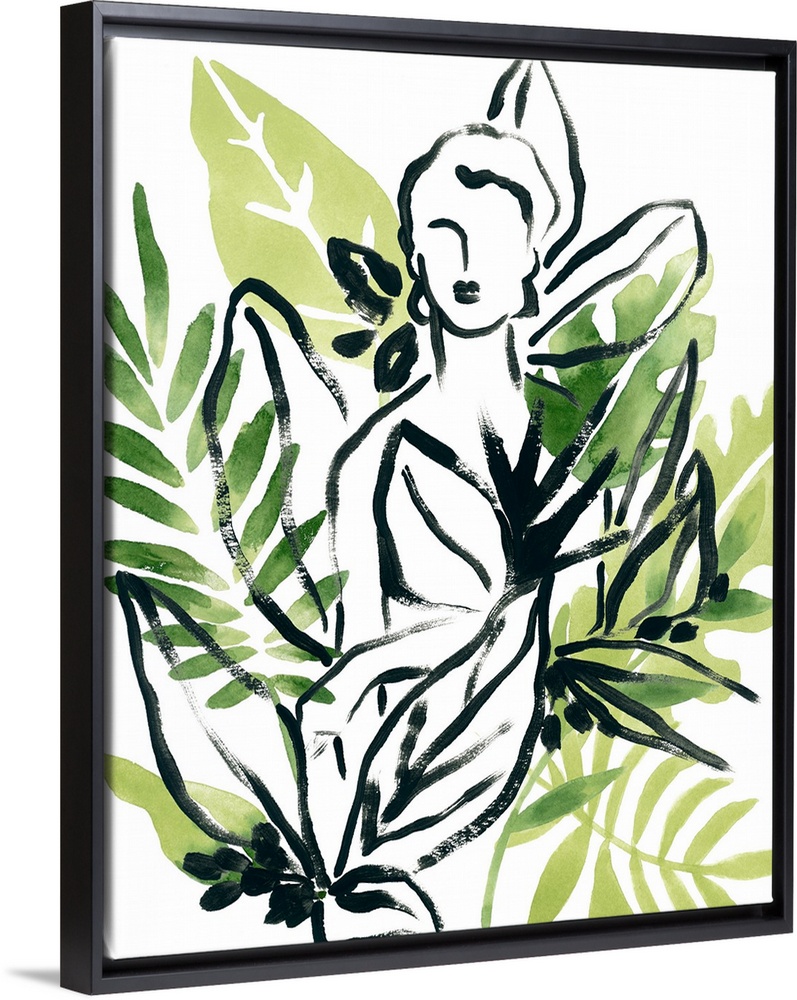 Art Bohemian Decorative Art Drawing Florals Leaves Green Wall Art People Figurative June Erica Vess